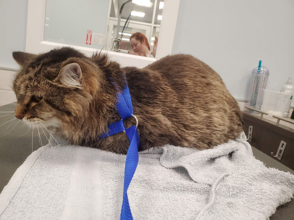 Our cat grooming is built with your kitties safety first in mind. We understand you have expectations, and we will do our best to meet those. However, some time cats have other ideas. We will try to do the nail trim, ear cleaning, breath spray, and face wipe first. Then move onto the haircut and/or brush out. Lastly, the bath and blow dry. Usually, the last bit is the part most struggle with. Your pet may go home either with a waterless bath or a bit damp depending on their attitude that day.